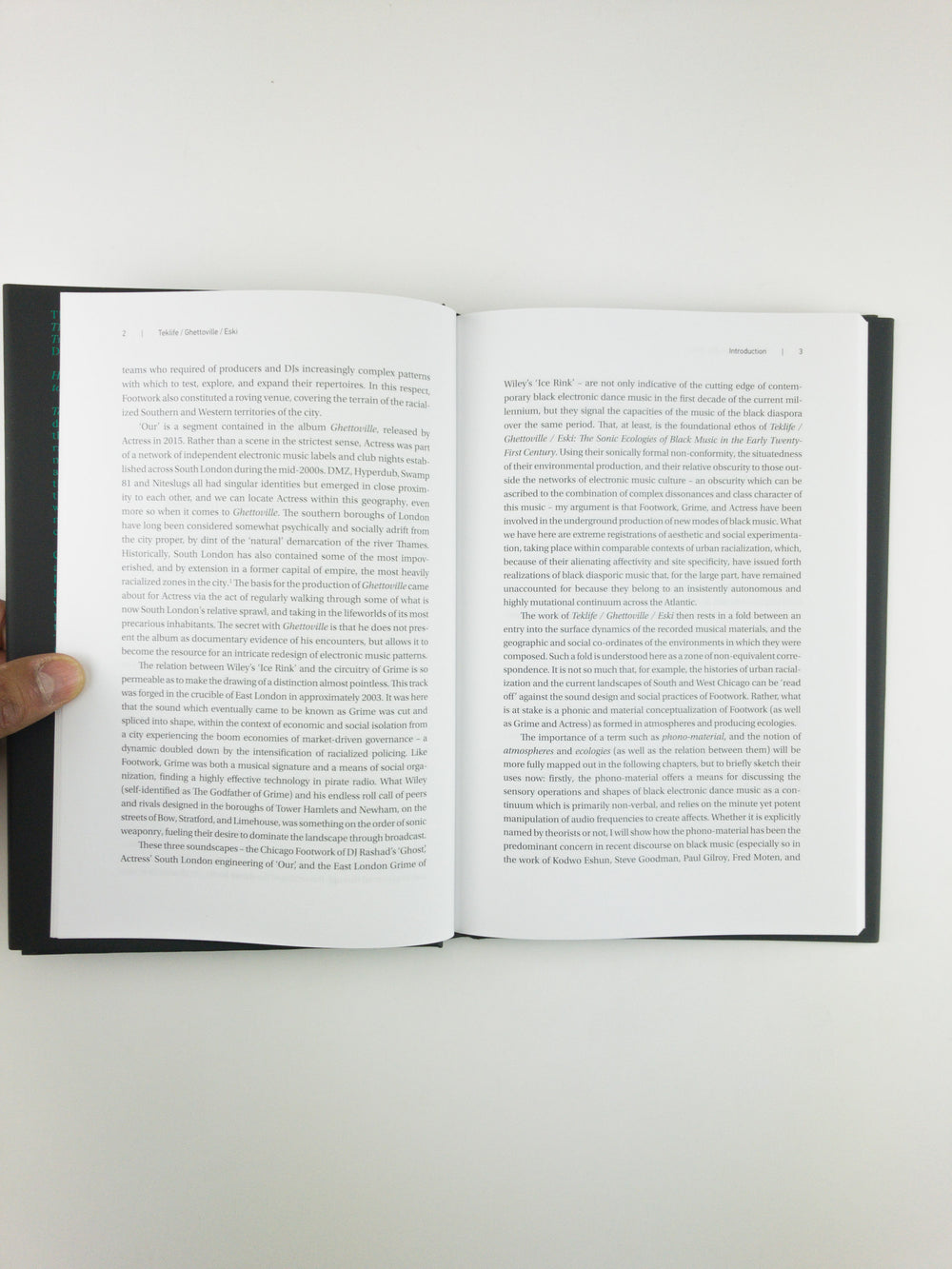 Closely analysing the Footwork scene in South and West Chicago, the Grime scene in East London, and the output of the South London producer Actress, Brar pays attention to the way each of these critically acclaimed musical projects experiments with aesthetic form through an experimentation of the social. Through explicitly theoretical means, Brar foregrounds the sonic specificity of 12" records, EPs, albums, radio broadcasts, and recorded performances to make the case that Footwork, Grime, and Actress dissolve racialized spatial constraints that are thought to surround Black social life.