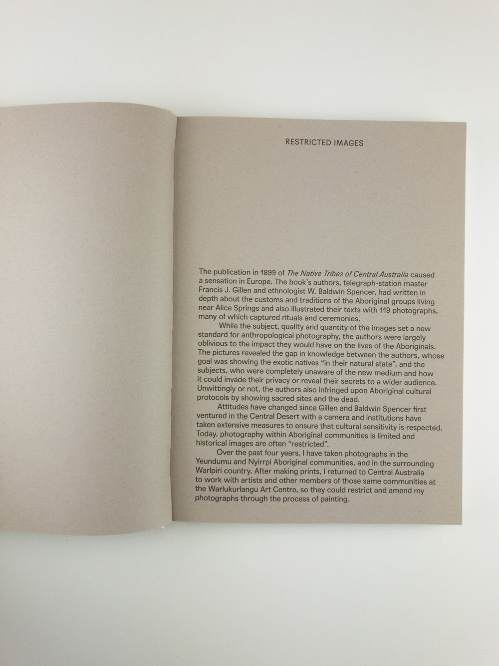 Restricted Images is a new art book by Patrick Waterhouse, bringing together an expansive collection of artworks made at the Warlukurlangu art centre, NT Australia, with local Warlpiri artists. This is Waterhouse’s first major work since his Deutsche Borse Photography Prize-winning project Ponte City. In institutions across Australia and Europe, archives encompassing thousands of colonial-era anthropological artifacts are now largely inaccessible, and images are often restricted to avoid showing pictures that infringe on Aboriginal cultural beliefs. With rules in place that mean only the descendants of people pictured can decide who is allowed to access them, much of the material remains unseen. Attitudes towards these images have changed since they were celebrated as a feat of anthropological photography by colonialists in the late 1800s, and now lingers an institutional uncertainty in how to approach the question of representation. In response, Waterhouse developed a collaborative venture in symbolically returning to the communities the agency over their own images. Spending several years taking pictures of them, he made prints and then returned, inviting the Warlpiri to paint the surfaces of the images and enact their own restrictions upon them using the traditional technique of dot painting. In intricate, colourful acrylic clusters they transformed the black and white depictions of themselves and their sacred sites. Restricted Images is the first installment in a long-term project that looks to renegotiate the politics of who gets to decide what is seen and what is kept hidden, and reveals artists and a community trying to understand one other.