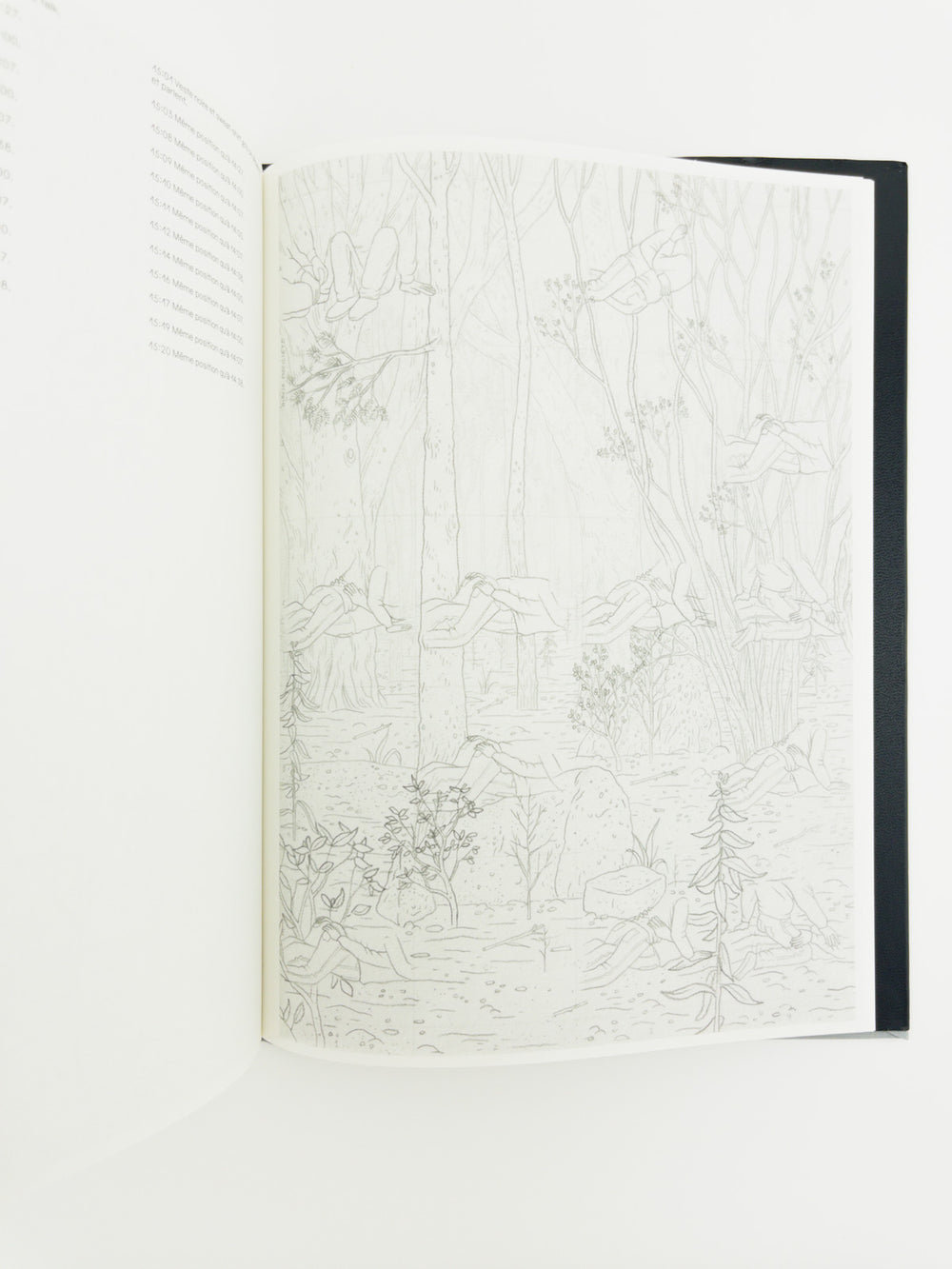 Published on the occasion of the eponymous exhibition at CRAC Alsace, Altkirch, France in 2021. The twenty-two drawings included in this book are the result of the observations written by Jorge Satorre in Mexico City’s Bosque de Chapultepec one October day in 2019. Based on these texts, the artist made a series of drawings over the course of four months, only referring to these written descriptions for guidance. Seven and a half hours of that day are represented, with each image corresponding to twenty minutes. In addition to helping classify the vegetation, each section of the grid represents one minute’s time.