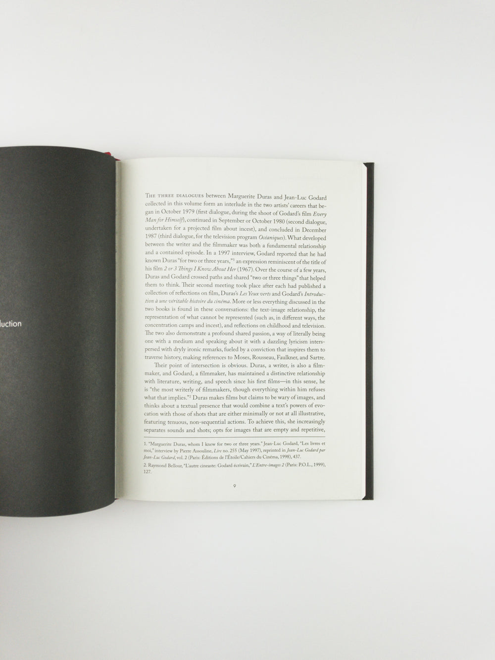Three dialogues between Marguerite Duras and Jean-Luc Godard from 1979, 1980 and 1987.