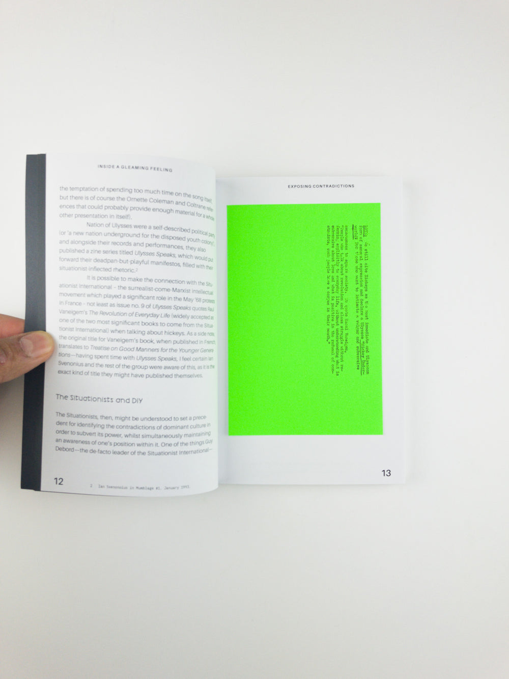 Inside a Gleaming Feeling is a slender collection of texts commodious in scope, constantly inhabiting the paradoxes and contradictions at which it points its compass, or - in the case of the metamodernist metaphor cited in the chapter for a while now, I’ve at least had a sense that whatever it is I am living is not something that is entirely resolved by the usual categories I have inherited - the pendulum oscillating between “innumerable poles”. Not with an exhausted drag from one portal, gate, debate, stage, screen or field to the next, but a delicate gathering force in dialogue with the present and its permutations. The texts gathered here enact an intersectional feminist praxis, a commitment to show all sides of this potent dodecahedron called ~culture. Craig’s is a goal not of placing this apart from that in binaried opposition, but tracing the threads and their interlopers, the ways in which they fold, crack, and foreground “fissures of possibility”. Read its title Inside a Gleaming Feeling as its “feeling structure”, a phrase which by the author’s own confession made its first attempt at utterance as a line which never made it into a song, could not be smoothly patterned in, but poses a fitting fly poster to read this book with. To gleam is to “shine brightly, especially with reflected light” and so the question leans: how is it even possible to be inside a reflection, fleeting brief and shiny? This contradictive something at the tip of the tongue is the positive inarticulation of the hook or the hashtag, bobbing its head to the rhythm of “paradox as constitutive to contemporary experience.”