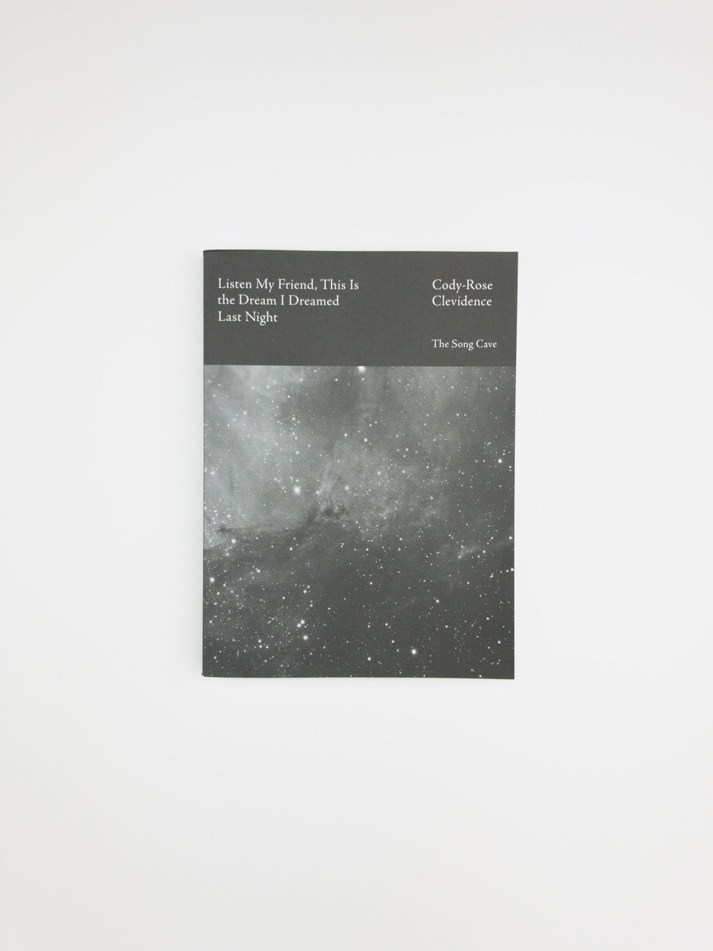 Unlike anything we've ever seen or published, Listen My Friend, This Is the Dream I Dreamed Last Night is a book of wonder in which poet Cody-Rose Clevidence layers the language of information with the language of the heart, constantly locating the connections between attention and perception. On each page local and global concerns combine in an effort to reveal what it’s like to live right now, during a pandemic in a broken world. With its uncategorizable form, somewhere between an essay and a prose poem, Clevidence mixes anthropology, poetry, autobiography, history, psychology, and philosophy, with subject matter ranging from agriculture, gender, justice, queerness, loneliness, pollution, space, guns, moths, family, grief, longing—it’s hard to name a subject relevant to our time that isn’t in this book. Clevidence’s deft movement between facts and feelings is immediate from the first page, with an inquisitive and searching voice stretched over one long, never-breaking block of prose, a catalogue that becomes revelatory by the end, allowing readers to imagine new ways of processing their own world.