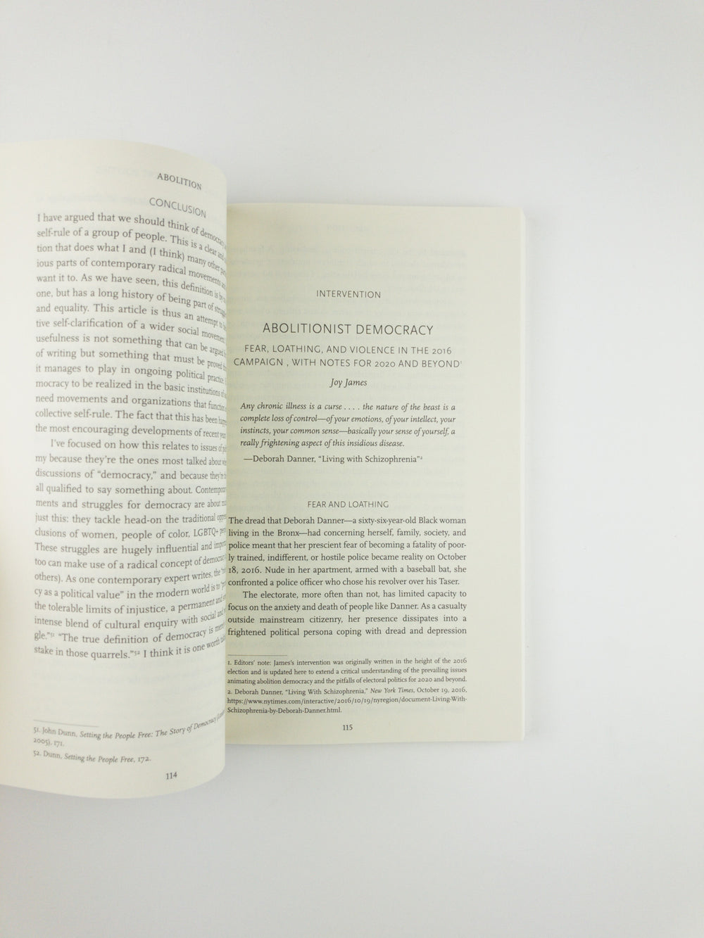In addition to centering and amplifying the continual struggles of incarcerated people who are actively working to transform prisons from the inside, Making Abolitionist Worlds animates the idea of abolitionist democracy and demands a radical re-imagining of the meaning and practice of democracy. Abolition Collective brings us to an Israeli prison for a Palestinian feminist reflection on incarceration within settler colonialism; to protest movements in Hong Kong and elsewhere, who use “abolition democracy” to advocate for the abolition of the police; to the growing culture in the United States of “aggrieved whiteness,” which trucks in fear, anger, victimhood, and a need for vengeance to maintain white supremacy; to the punitive landscapes that extend from the incarceration of political prisoners to the mass deportations and detentions along the U.S. southern border.