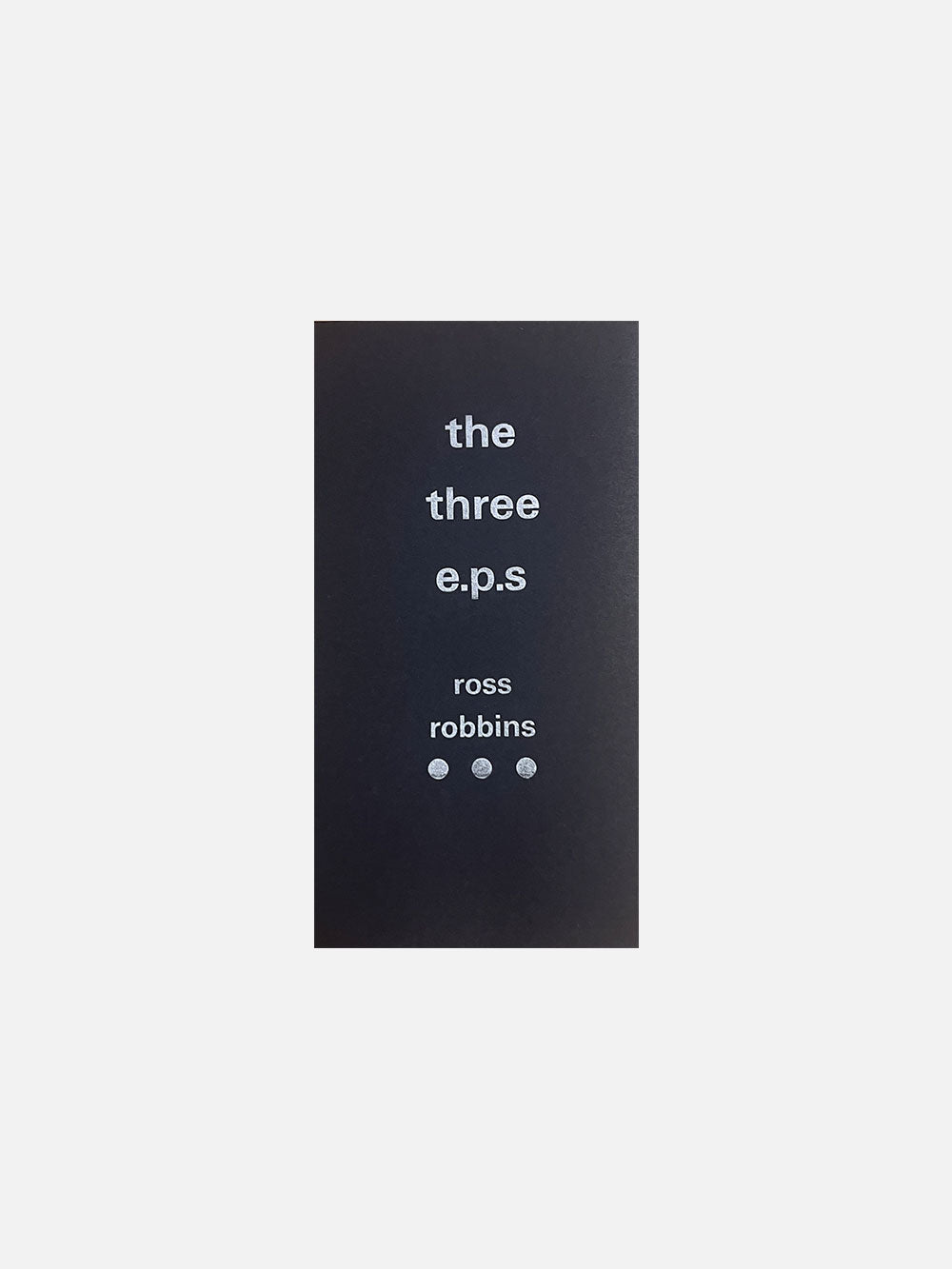 Ross Robbins’s first full-length collection of poetry and writing, The Three E.P.s, published by Two Plums Press