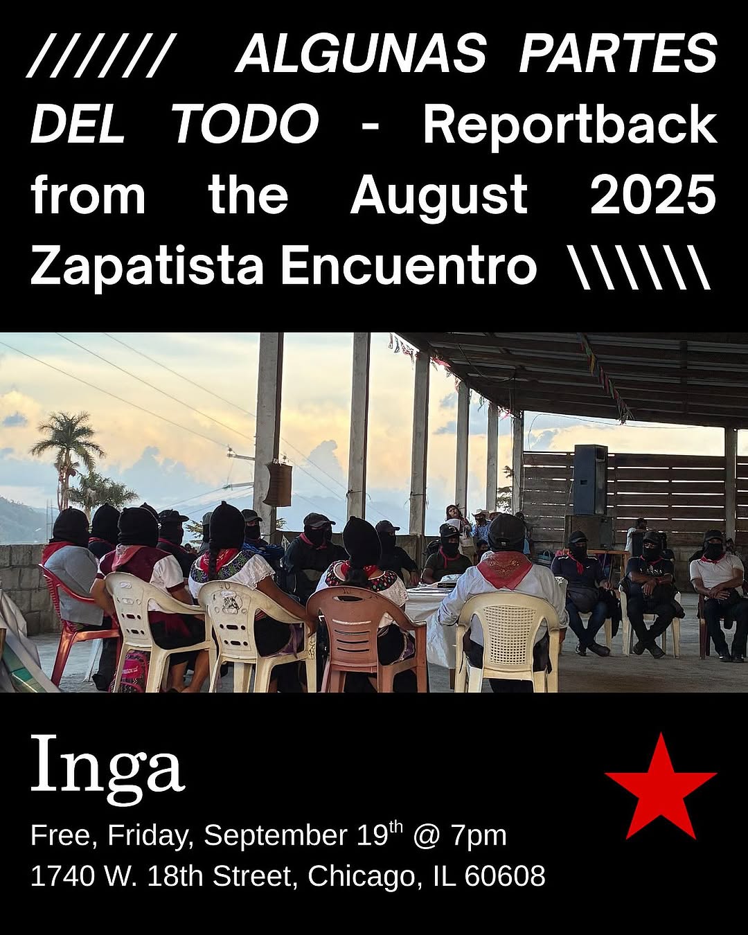 "Will be sharing video, audio, and a presentation, followed by group discussion please come, September 19th at Inga books, 7 pm."