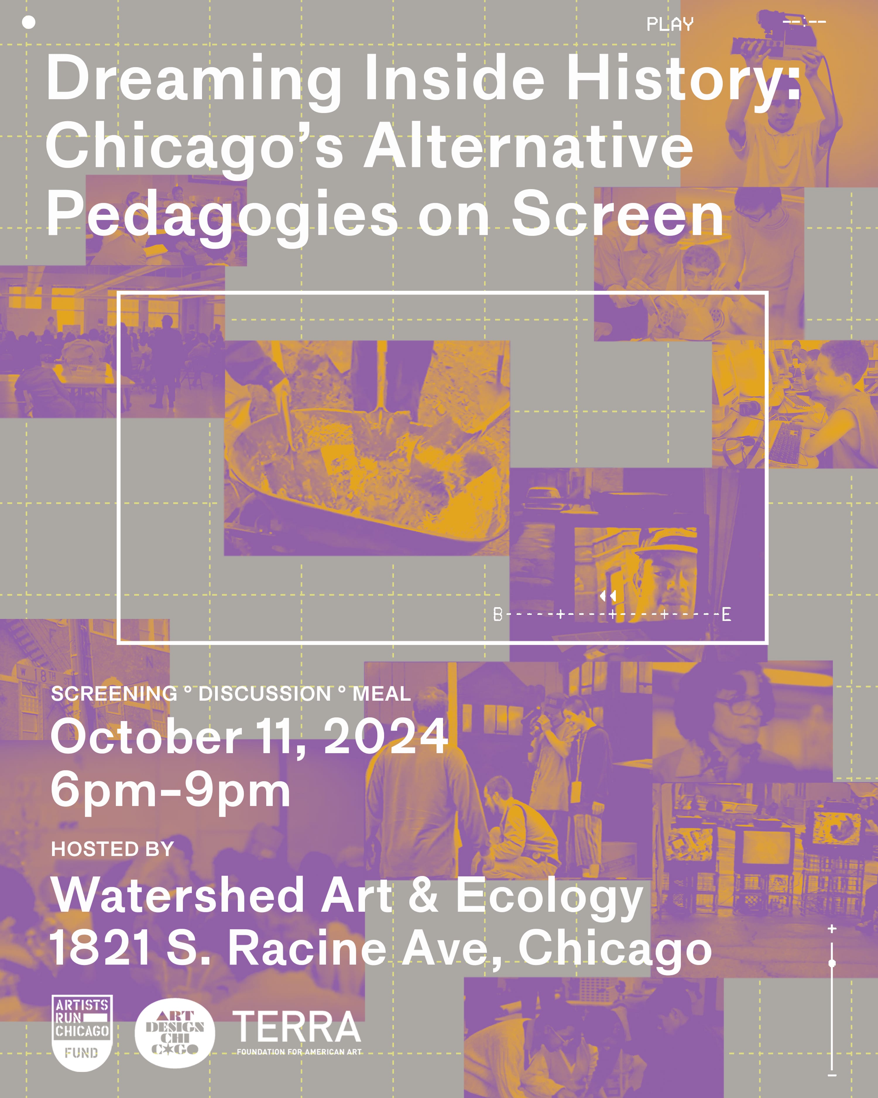 A film screening, discussion, and shared meal which unpacks and revisits histories of alternative art and design education, in and outside schools, across several decades of Chicago history. Featuring works from Chicago Metro School, an autonomous CPS high school “without walls” founded in the 1970s; the Stockyard Institute, a DIY art school and radio station for grassroots community organizing founded in 1995 in the Back of the Yards neighborhood; Street-Level Youth Media, a collective amplifying youth voice, equitable access to new media, and civic awareness; Video Machete, founded in 1994 as a collective of activists, students, and media-based artists running youth media workshops across the city; and Eleanor Boyer & Karen Peugh’s La Maestra (1984), a look at Pilsen’s Maria Luisa Michel Almonte, a flower shop-based community arts and crafts teacher. Including newly-digitized footage, the featured work shows students and teachers (sometimes indistinguishably) asserting what it looks like to practice art and design education in an alternative context, and why taking such pedagogies to the margins of institutionality is meaningful for some and necessary for others. Join us for a conversation and food after the screening alongside the presence of students, teachers, and filmmakers involved. Programmed by Inga, a Pilsen bookshop, and hosted by Watershed, a space for thinking across and with art & ecology.