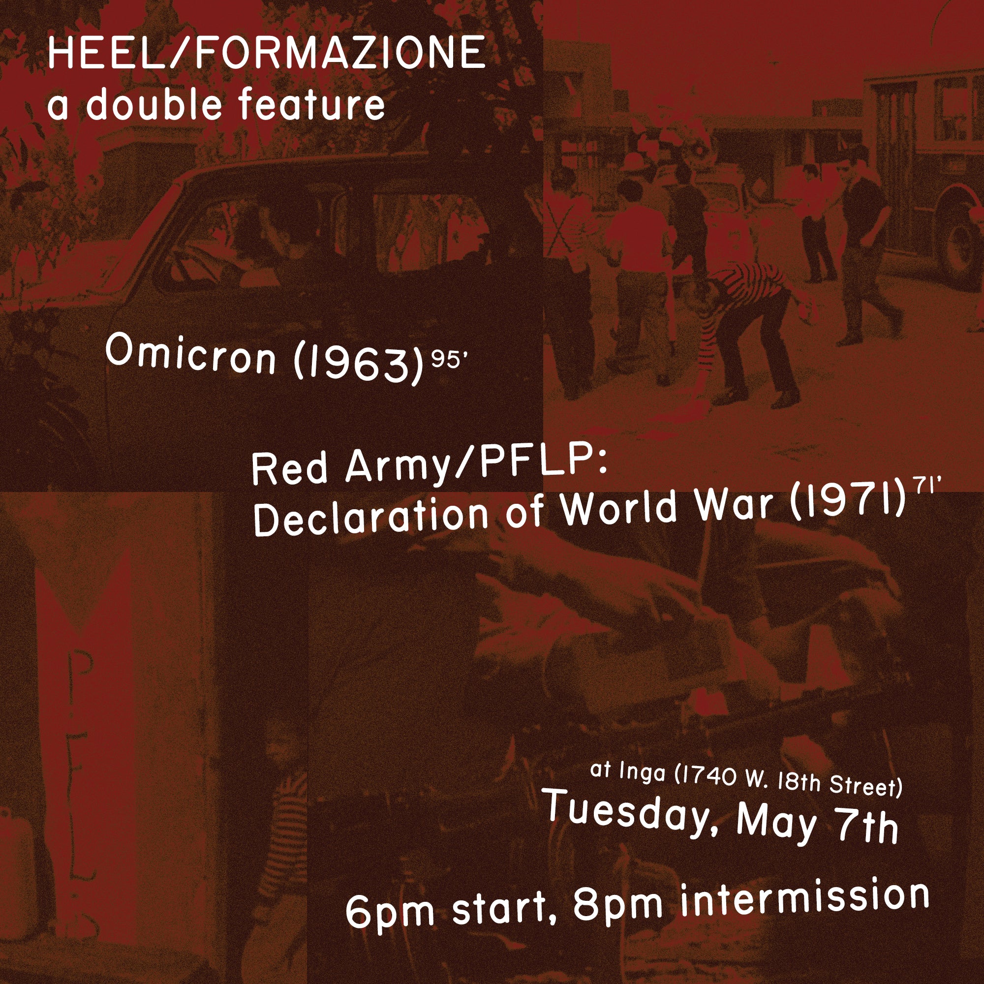 Showing are OMICRON (1963)—between ironic science fiction, comedy, surrealism, television investigation, and journalism: a tale of "alienation" via the extraterrestrial possession of a factory worker's body—and RED ARMY/PFLP: DECLARATION OF WORLD WAR—a propaganda newsreel film promoting the Palestinian resistance via the the everyday banality of military training and slow-paced preparation exercises